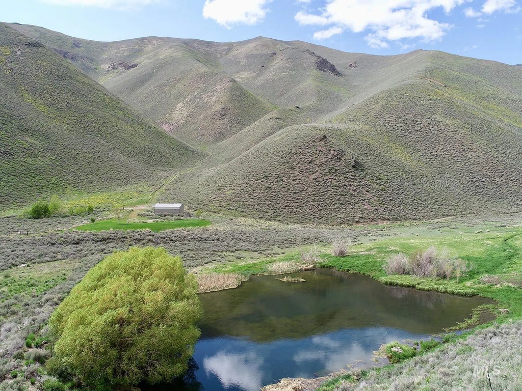 The 80± acre Spirit Woman Ranch lies in a scenic, secluded canyon three miles north of Bellevue and 20 miles from downtown Ketchum and the Sun Valley Resort. The property is surrounded by BLM lands and flanked by massive ridgelines and foothills that rise to over 8,000 feet. Spring-fed Slaughterhouse Creek flows through the ranch year-round and feeds a lovely, willow-lined wildlife pond that is home to wild brook trout, waterfowl, and wading birds. The ranch holds a single water right from the creek to irrigate up to two acres around the pond and provide water for livestock. The property is largely undeveloped, and the only structure is a garage/utility building that includes a bathroom with a shower. The primary homesite is adjacent to the garage and encompasses a level, grassy area above the pond with panoramic views of the canyon. The ranch does not electricity but is well-suited for the installation of an off-grid solar power system.