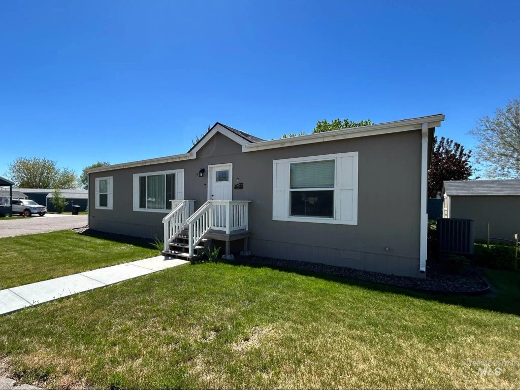 The perfect home in a quiet mobile home park located close to all amenities. Built in 2021 and 1280 sqft ,this 3-bedroom 2 bath manufactured home sits nicely on a large corner, landscaped lawn. Primary suite offers a walk-in closet, and the split floor plan provides privacy with 2 additional bedrooms for office, guests and hobbies. All newer appliances. Large storage shed included. Lot rent is $600 and $75 for water and landscaping.