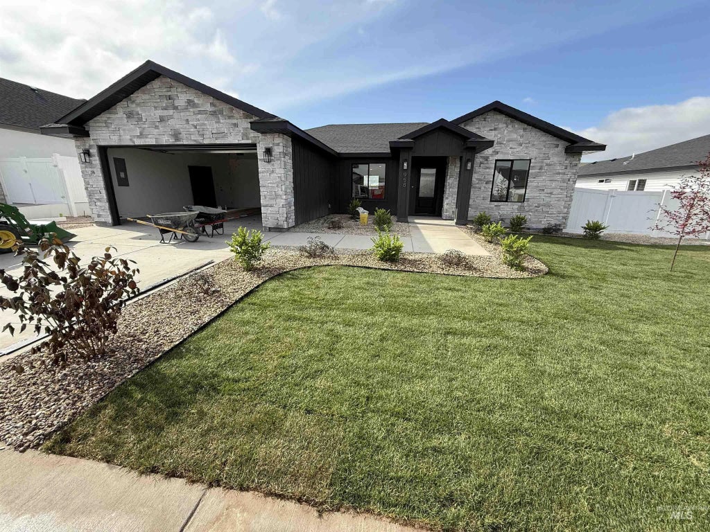 The "Julia Plan" is a single-level home, designed by CA Homes, LLC is currently under construction and set for completion in mid-October 2025. Featuring 4 spacious bedrooms and 2 bathrooms, this 1,515 sq. ft. floor plan offers an open-concept layout perfect for modern living. The home showcases luxury vinyl plank flooring throughout the main areas, complemented by low-pile carpeting in the bedrooms for added comfort. The kitchen is a chef’s dream, complete with quartz countertops, stainless steel appliances, undermount sinks, Pfister matte black faucets, and a four-burner gas cooktop. Charming modern farmhouse accents include custom cabinetry, stylish door pulls, recessed can lighting, and vaulted ceilings that add an airy and elegant feel. Natural light flows through the home, highlighting the detailed baseboards and thoughtful design touches throughout. Additional features include a finished, insulated 2-car garage and 11 ft. of RV parking.