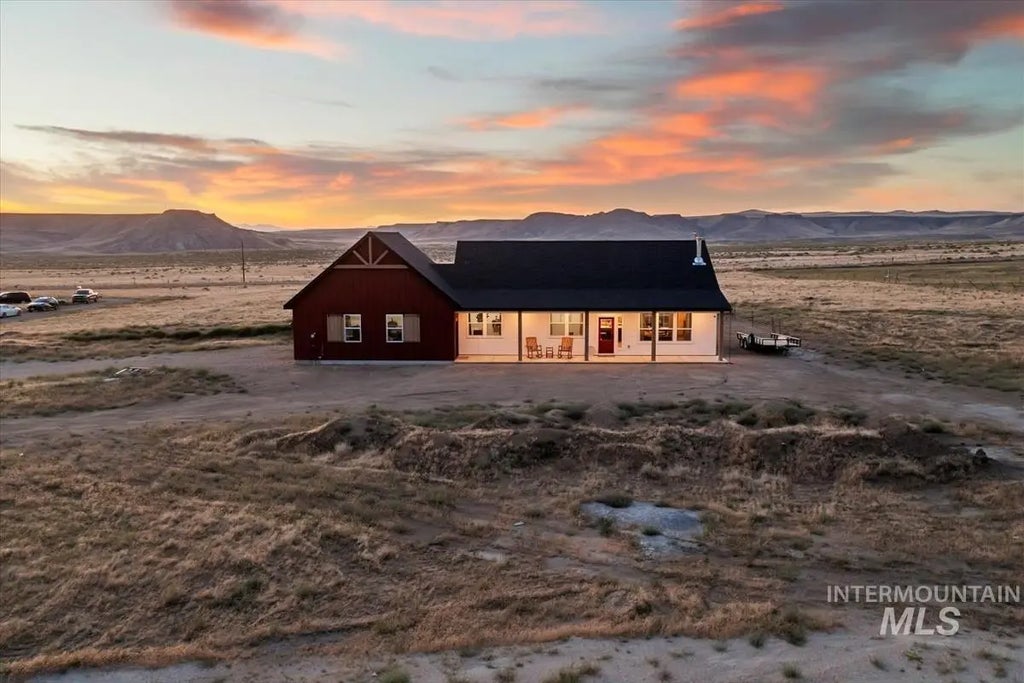 Completed in November '24, this beautiful home on 5+ acres is surrounded by expansive BLM ground (3 min away) & incredible views! You're welcomed inside from a covered patio w/box beam pillars into a great room w/vaulted ceilings, wood burning stove & fabulous kitchen-sunny with natural light. Every selection was lovingly & thoughtfully chosen, from farmhouse light fixtures & windmill ceiling fan4, to sliding barn door shutters, quartz counters & soft close cabinetry. Built for country life w/resilient LVP floor throughout the main living spaces & featuring a covered 11'x27' east facing back patio (beautiful sunrises & protected from weather!) The master suite is stunning: dual vanities, quartz counters, soaker tub, floor to ceiling tiled walk in shower & spacious WI closet. Bring your RV: 50 amp hookup & septic clean out plus horseshoe driveway! Bonus room trusses were built over the garage & a full water treatment system has been installed. Just 1.5 miles to Rabbit Creek Trailhead (OHVs) & 1/2 hr to Nampa!