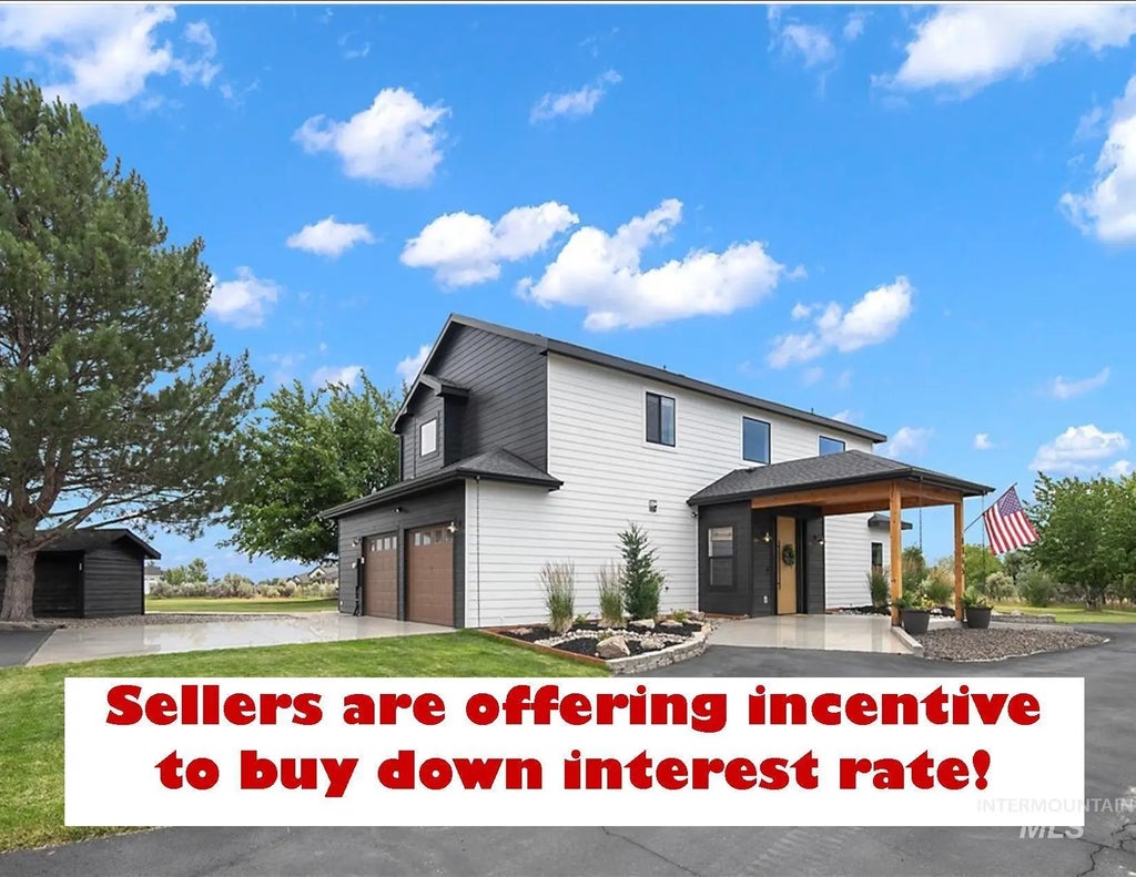 Sellers are offering $25.000 towards a rate buy down or concessions! You must see this property in person to appreciate the home & land. Evening sunsets capture the city lights. This one-of-a-kind architectural showpiece perfectly blends rural charm with modern luxury. 3,100 sq ft farmhouse-inspired home offers 5 bedrooms & 3.5 beautifully designed baths. Enjoy breathtaking panoramic views of the Butte and Owyhee Mountains from this serene 4.45-acre retreat. The heart of the home is a gorgeous, oversized kitchen w/ exquisite finishes, Bosch Black SS appliances, speed oven, expansive quartz waterfall Pantry Island, 40 soft close drawers, hidden walk- in pantry, farm sink. Ductless heating & cooling ensure year-round comfort. A unique indoor pool & large recreation rm. The property also boasts a 6-car garage 2,000 sf garage/shop. 4 Elementary schools. Long private driveway along your own pasture. Bring the horses & chickens, ride your dirtbike, quads & UTV's. BTVA