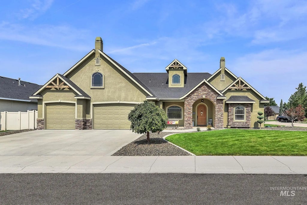 Welcome to this spacious single-level home in the heart of Kuna, offering 3,017 sq ft of comfortable living. With 4 bedrooms, 2.5 bathrooms, and an open, thoughtfully designed layout, there’s room for everyone to relax and gather. Warm hardwood floors flow throughout the home, creating a cozy yet elegant feel, while the fireplace adds the perfect touch for quiet evenings in. The kitchen is well-equipped with stainless appliances and plenty of space for cooking and connection. Step outside to enjoy a generous 10,454 sq ft lot, complete with timeless stucco-and-stone finishes and a 3-car garage. Whether hosting backyard barbecues, playing in the yard, or simply enjoying the Idaho sunsets, this home is made for memories. Located near Silver Trail Elementary, Kuna Middle, and Kuna High, you’ll love the convenience of schools, community, and small-town charm just minutes from your door. Blending comfort, style, and space, this Kuna gem is ready to welcome you home.