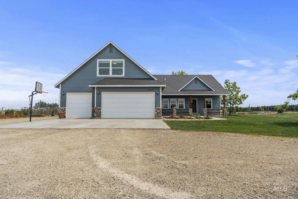 NEW PRICE and ready for new owners who want to come live their dream! Just steps from the Snake River, surrounded by stunning mountain & river views, this custom 5-acre estate with no HOA features an expansive & welcoming covered front porch with stone & wood accents. The chef’s kitchen, a true masterpiece, features a generous center island with wrap-around cabinetry, custom wood cabinets with soft-close doors & pull-out drawers, full tile backsplash & a butler’s pantry. The spacious, main-level primary suite features a walk-in closet with built-ins, dual sinks & a step-in shower. Two additional bedrooms, a full bath & laundry room complete the main floor. Upstairs includes an XL bonus room that overlooks hills & mountains, two additional bedrooms & a full bath. 9’ ceilings, wood blinds, LVP flooring, & NEW water softener & filtration system included. Outdoors, enjoy a fully fenced grassy backyard featuring mature trees & in-ground trampoline, a fenced pasture with irrigation, covered patio, RV parking & a 10x20’ shed. The extra-deep 3-car garage provides abundant storage! Water rights are included! Bring your animals, horses, RVs, boats and come live your dream!