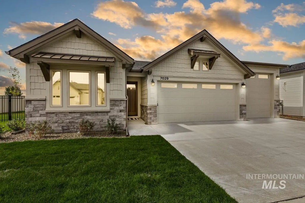 The GREYHAWK MODEL| Blackrock Homes. All new plan featuring 31' deep RV/Boat Bay with 9' x 11' door + additional shop/work area. East facing backyard. Apart of the Pinnacle Collection at Skybreak- Enjoy COMMUNITY POOL, pickle ball courts, playground + community dog parks! Upgraded finishes include custom cabinets, all quartz countertops, hardwood (lvp), upgraded trim detail including ceiling beams in living room, SS appliances including built-in 5 burner industrial gas range, built in Bosch oven, microwave & dishwasher. Walk-in butler's pantry + tons of additional storage throughout. Light & airy floor plan w/lots of natural light & cozy fireplace. Tile floors in laundry, secondary & primary baths. * photos similar but not of actual home. actual seletions are Medi package.