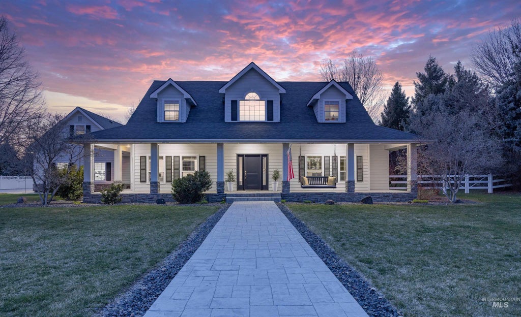 Stunning custom estate in The Colony. Set on a private, manicured 1 acre lot, this beautifully updated home makes a bold impression with a stunning, newly painted interior & exterior, new luxury carpet, wraparound porch, mature trees & lush landscaping. The Colony is known for estate living on 1-plus acre lots with beautiful trees, gorgeous homes, and exquisite surroundings near top schools, fine dining, and all that Eagle offers. Inside, enjoy soaring ceilings, designer fixtures, crisp white tones & LVP flooring throughout the first level. The great room features a sleek gas fireplace, custom built-ins & opens to a kitchen w/ luxury quartz countertops, island, and spacious dining. The main level primary suite offers a freestanding tub, dual vanities & walk in shower. Barn doors open to a front den. Upstairs, large bedrooms w/ charming dormers, walk in closets & private ensuite. Bonus room/office has private entrance. Main level guest suite ensures privacy. Covered back patio, large backyard, RV/boat parking!