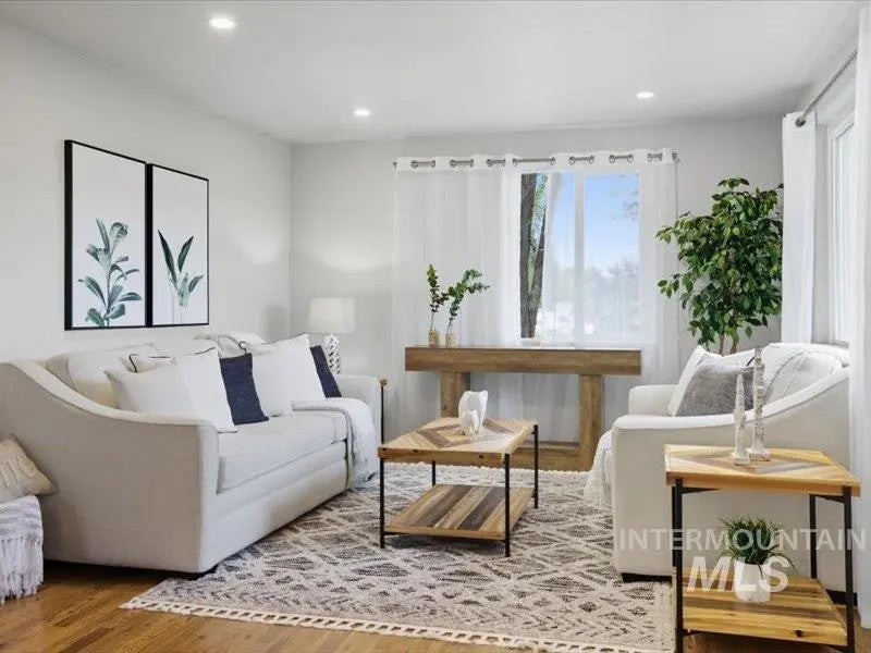 Move-in ready and beautifully updated, this fully remodeled 3-bed, 2-bath home on 1.17 acres blends modern comfort with country convenience. The bright, open floorplan showcases a contemporary kitchen with stylish finishes and plenty of prep space, flowing into a roomy living/dining area perfect for entertaining. The primary suite offers privacy and comfort while two additional bedrooms accommodate family or guests. Several detached outbuildings — including a detached garage with a workshop — provide flexible space for vehicles, projects, storage, or animals. Thoughtful landscaping and a peaceful yard complete the package. Enjoy cozy sunsets on the beautiful new TREX deck watching the peacocks come in for their evening visits! Other upgrades include, A new roof on the garage, new gutters, new windows, new AC unit, solid wood doors with high end Sure-lock handles, real wood casing and baseboards, solid oak flooring and stair treads and updated electrical! Easy access to Nampa amenities and highways — If you are looking for small acreage in a great location, look no further! Be sure to check out the vintage clawfoot tub on the main floor and bookshelf downstairs, it is also a door! schedule your showing today.