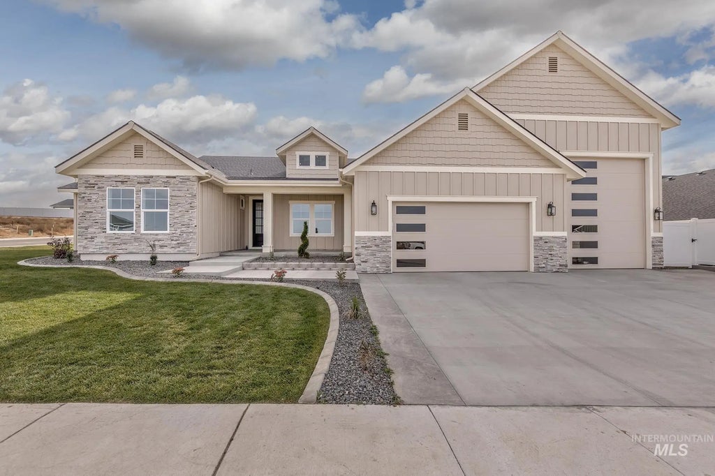 Look at this tastefully thought out home with a huge RV garage! This split bedroom floor plan has lots of natural light. Featuring a dream kitchen with butlers pantry, large island and plenty of cabinets. Stone surrounded gas fireplace with floating shelves. The master suite includes a large walk in closet, tiled walk in shower, soaker tub and dual vanities. The three additional bedrooms, one which would make a great office all have nice size closets with built in shelving. Nice sized laundry room with sink and a half bathroom. Walk out into the large covered back patio to enjoy some quiet time or do some entertaining.