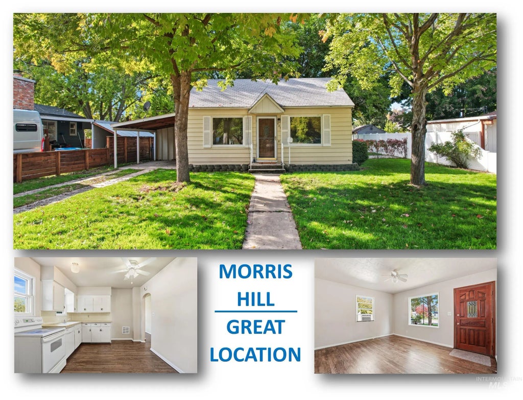 Phenomenal Morris Hill Bench Location! Walking distance to Morris Hill Park & less than 1 mile to Ann Morrison & Kathryn Albertson Parks. 2.4 miles to Boise State University & approx. 2 Miles to Downtown! Also close to shopping, hospitals, schools, freeway, bus routes, bike paths, Zoo, Garden City Water Park, etc. Charming 2 bed/1 bath 1950's home with beautiful & professionally refinished hardwood Oak flooring throughout! Light & bright primary & 14x12 living room. Home also features, ceiling fans, two toned paint, panoramic windows in the front of the home, crystal doorknobs, newer water heater, built-in hall storage & utility room w/shelving & doggy door w/built in privacy window w/access to back patio. Bathroom features wainscoting, newer vanity & flooring, medicine cabinet, shower/tub combo w/newer privacy glass window. Gorgeous mature tree lined street. Spacious lot with no immediate back neighbors, room to garden, RV potential, 20x12 Carport, lots of parking, sidewalks, storage shed, fully fenced, outdoor firepit & majestic trees! Washer & Dryer included & new ductless mini split being installed. No HOA. See Tour!