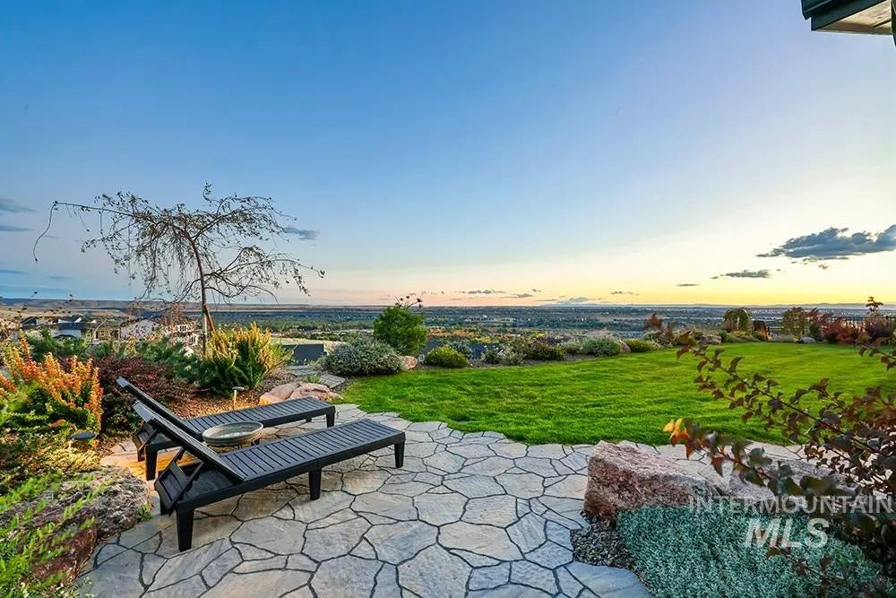 Luxury single-level living on a premier homesite in Harris North! With no front or rear neighbors, this sophisticated residence offers unobstructed panoramic views, from the snow-capped Owyhee Mountains to the sparkling Boise River. Timeless modern craftsman exterior is complemented by spectacular custom landscaping, mature trees & hand-placed boulders. Hardwood floors flow from entry to great room, anchored by a gas fireplace with custom masonry and built-ins. The chef’s kitchen features center island, Bosch ovens, gas range, abundant custom cabinetry & a spacious walk-in pantry. A nearby wine room is wrapped in custom brickwork - just one of many special touches in this home. The split-bedroom design includes 2 bedrooms & an office in one wing, & private primary suite with spa-like bath & spacious walk-in closet in another. Step outside to breathtaking, wide-ranging views of the city, mountains, & verdant valley below. Designed for entertaining, from the spacious covered patio with gas fireplace & included TV, to top-of-the-line built-in outdoor kitchen with stainless appliances & more custom stone masonry. Modern upgrades include extensive electrical, dimmable lighting, automated blinds, built-in Sonos speakers, & full AV wiring. Perfectly positioned between the foothills & river, & ideally located near Harris North amenities, pool, foothill trails, greenbelt & popular schools.