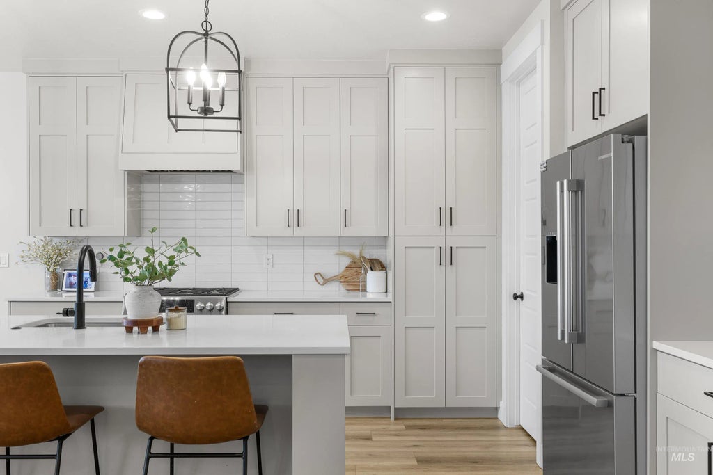 Better than new, this beautiful Alturas Home offers 3 bedrooms, 2 bathrooms, and a bright open-concept layout that seamlessly connects the kitchen, dining, and great room. The home is loaded with thoughtful upgrades including floor-to-ceiling soft-close cabinetry, 8’ doors, quartz countertops throughout, and a luxurious primary suite featuring a soaker tub and walk-in shower. With no backyard neighbors and a walking path along the right side, you’ll enjoy extra space and privacy while still being located in the heart of one of Nampa’s most desirable communities.
